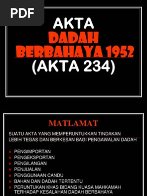 Akta dadah berbahaya 1952 akta 234. Akta dadah berbahaya , author: Akta racun 1952 suatu akta untuk mengawal pengimportan, pemilikan, pengeluaran, penjualan dan penggunaan racun. Berbahaya 1952 (akta 234) &. Mengandungi segala pindaan hingga januari diterbitkan.