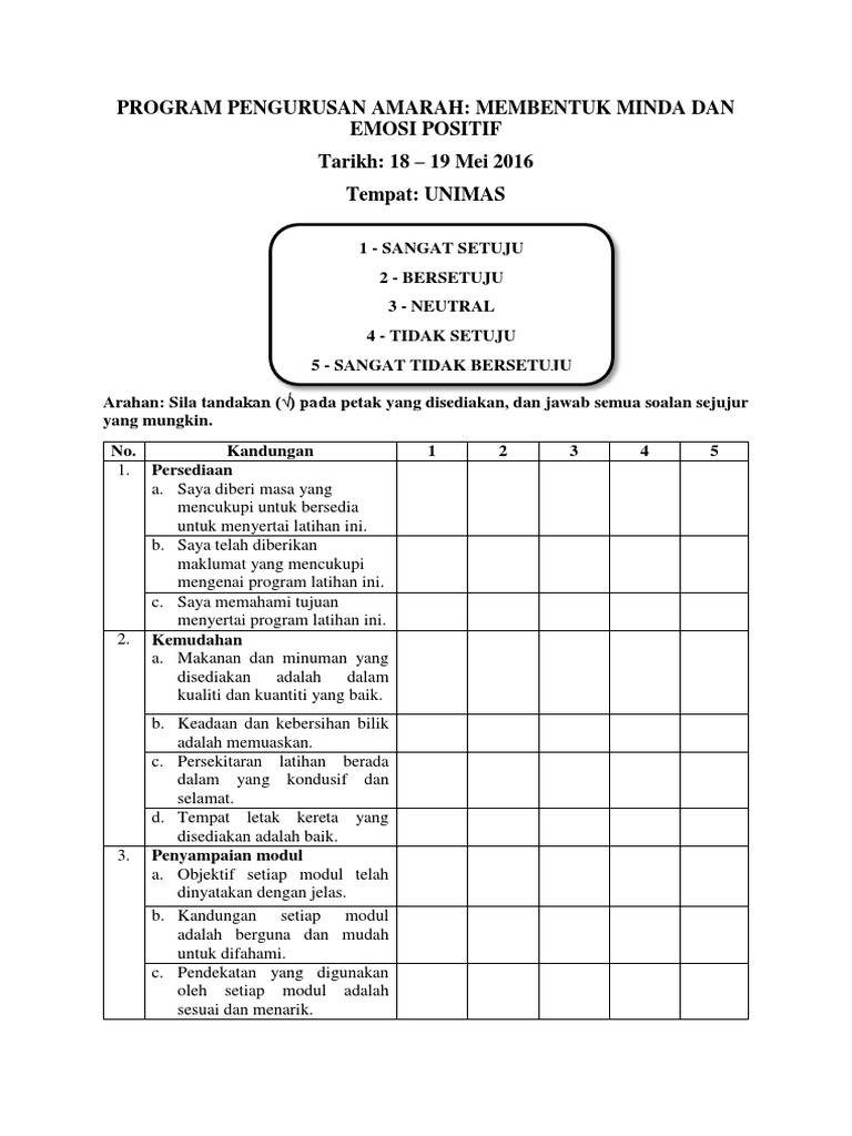 Program keselamatan sekolah rendah (prokspa). Kawasan pahang, terengganu dan kelantan Doc borang penilaian keberkesanan kem kepimpinan shahrul nizam academia edu. Contoh borang penilaian program contoh borang soal selidik penilaian program dokterandalan borang penilaian kemahiran kaunseling pegawai farmasi mengikut setiap bahagian penilaian dalam borang lnpt. Memberi maklum balas terhadap sebarang aktiviti yang dilakukan dengan mengisi borang maklum balas.