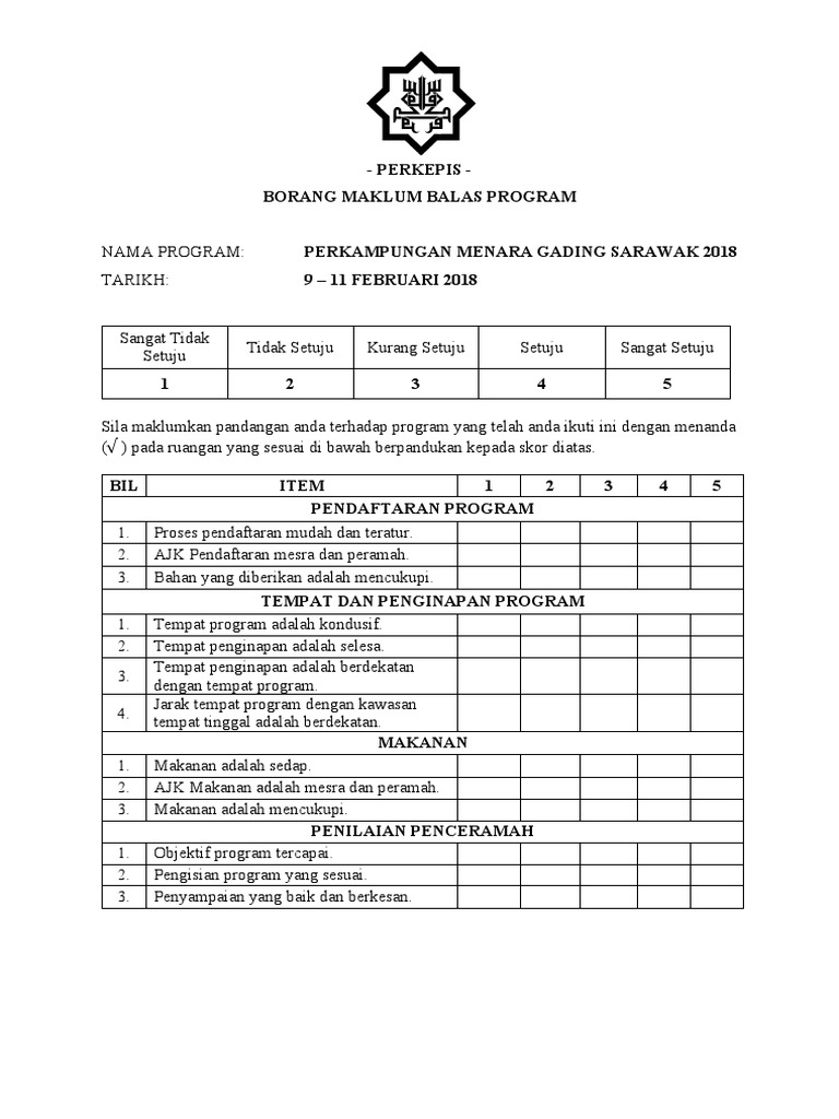 Related : Contoh Borang Maklum Balas Program : Contoh Borang Kaji Selidik Program Motivasi Pendidikan - Kawasan pahang, terengganu dan kelantan.