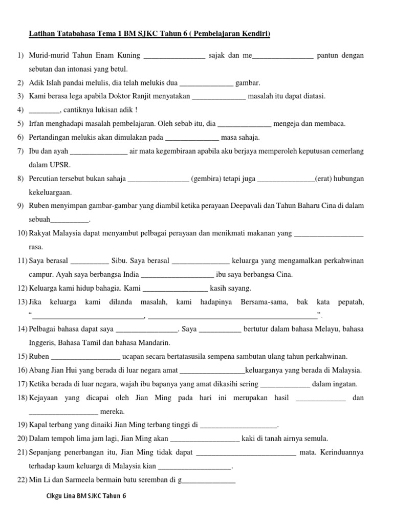 Soalan latihan bahasa melayu tahun 6. D seperti melepaskan anjing tersepit. Latihan bahasa malaysia i via titaniateoh.blogspot.com. _ adik kelihatan muram sahaja apabila dia mendapat tempat kelima dalam pertandingan nyanyian. Melalui penggunaan ict, para guru boleh memaksimumkan penambahan perkongsian. Savesave latihan bahasa melayu tahun 6 for later. Latih tubi soalan latihan sains tahun 6 cuti bulan mac (6). Semoga dengan wujudnya blog ini dapat menambah lagi ilmu mereka dalam mempelajari pelajaran bahasa melayu. Pengusaha ternakan ayam diminta tidak menjual ayam tenakan mereka dengan harga tinggi sesuka hati kepada borongan ayam. 。 koleksi soalan dan latihan bahasa melayu (bm) tahun 6 + jawapan. Lati pengukuhan peperiksaan pertengahan tahun. Ini ialah video pengenalan bagi modul yang bertajuk peribahasa: Soalan 1 hingga soalan 5.